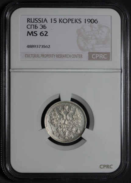 Россия 15 копеек 1906 года СПБ ЭБ В слабе CPRC MS62