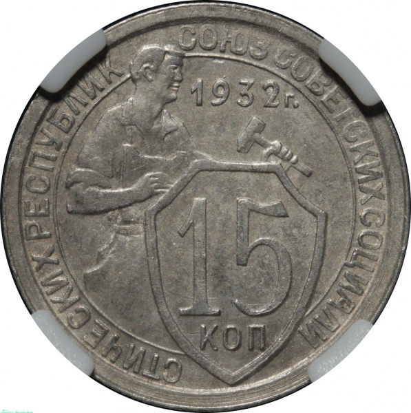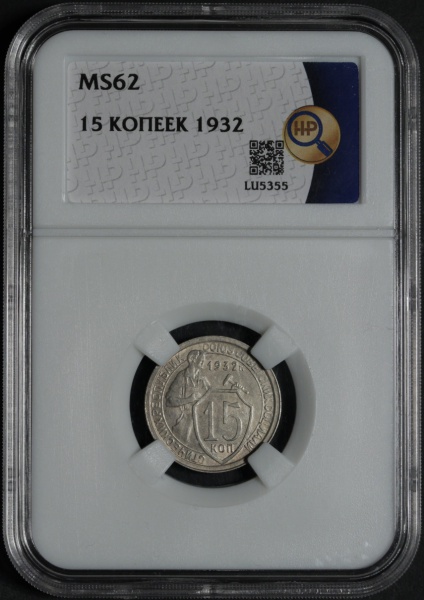 СССР 15 копеек 1932 года. В слабе ННР MS 62